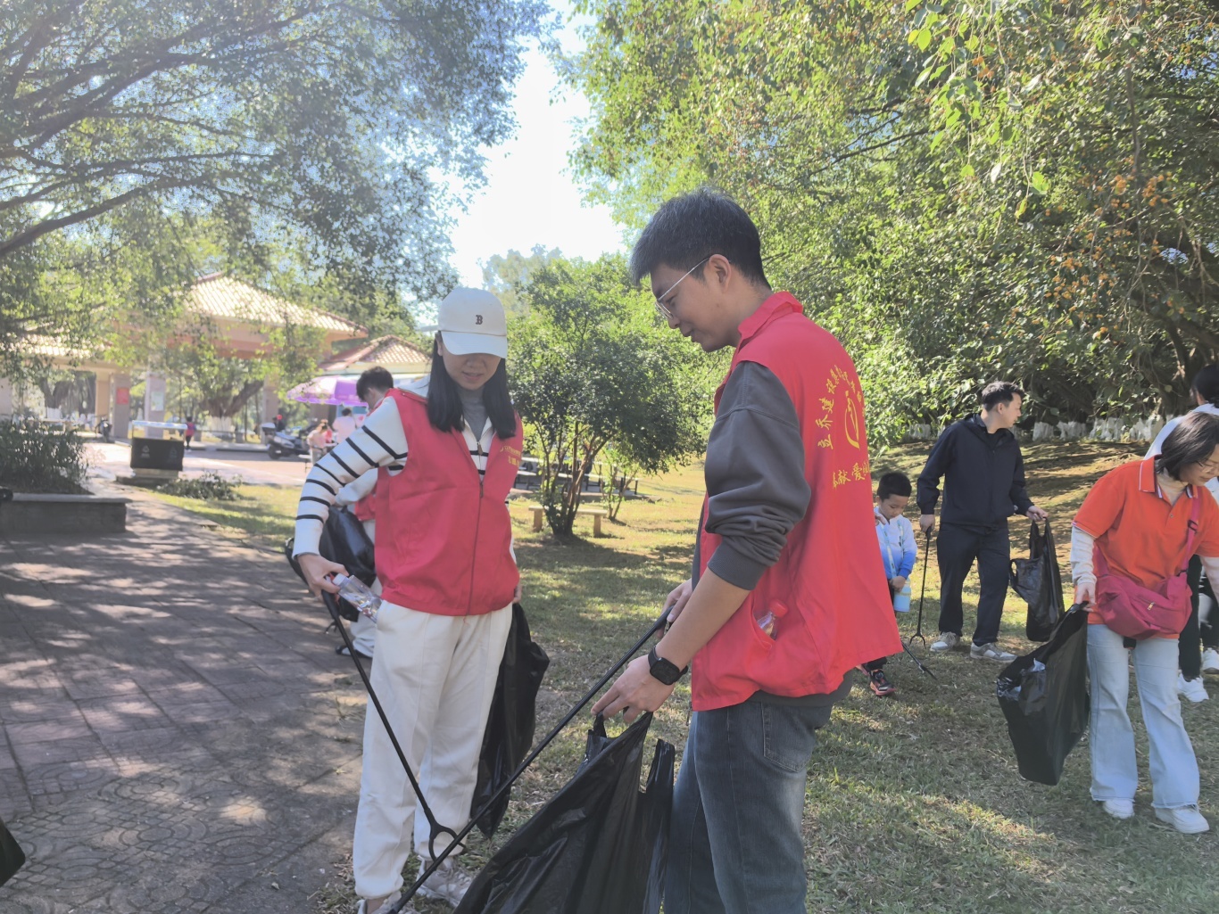 上午9时30分,志愿者们准时集结于公园南门。在工作人员的统筹下,有序领取垃圾钳、环保袋及志愿者服装,明确活动区域与安全事项,为环保行动做好充分准备。 随后,大家纷纷手持工具,化身“环境卫士”,以饱满的热情投入清洁行动。大家分工协作、专注细致,沿公园主干道及蜿蜒小径,认真清理散落在地上的垃圾。一次次弯腰拾起的身影,汇成公园中一道亮丽而温暖的风景。